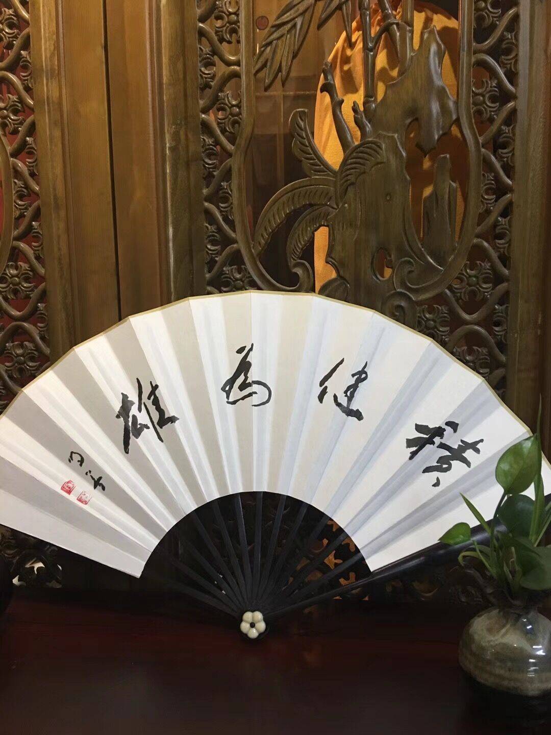 折扇的把玩,指的是把玩,又称作盘,可分为文盘与武盘两种手法,主要是把玩扇骨。玩家常置手边的玩物,日夕摩挲,越摸越润,长久之后似得人之灵气,更具神采。“把玩”又称“盘”,就是不断用手抚摸,盘扇骨是养扇骨的手段,是悠闲中的一种雅好。尤其是一些新制作的扇骨,把玩文玩折扇需要注意需长期地把玩才能去掉其火气,新骨不断的“盘”,越“盘”越亮,其颜色也会由白变黄、由黄变红,给人以古朴凝重之感。